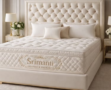 Every Srimanti edition is presented as a complete ceremonial sleep ensemble, thoughtfully composed to honour life’s most auspicious milestones. At its heart lies The Wedding Mattress, accompanied by the Srimanti Ceremonial Quilt, Srimanti Pillows, and Srimanti Bed Linens—each element crafted to exist in quiet harmony. Together, they feel complete, considered, and worthy of the occasion they represent.